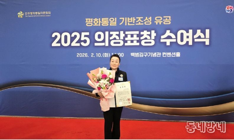 동네방네 김형규 기자 | 정임행 민주평화통일자문회의 강남구협의회 차석(㈜파모소 회장)이 2026년 2월 10일 오후 2시 서울 용산구 백범김구기념관 컨벤션홀에서 개최된 민주평화통일자문회의 2025 의장표창 수여식(서울지역)에서 민주평화통일자문회의 의장 대통령 표창을 수상했다.
