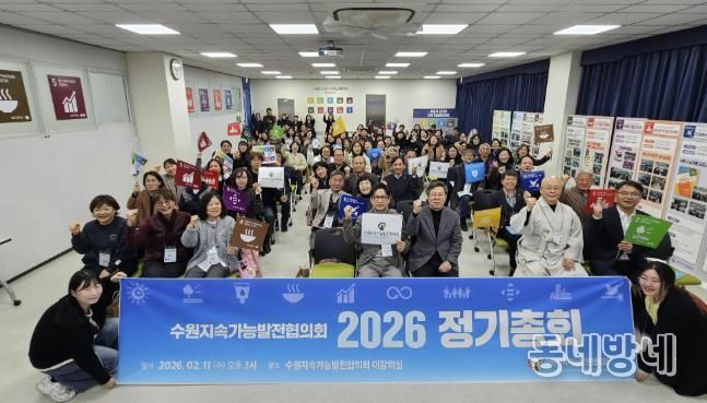 동네방네 김형규 기자 | 수원시지속가능발전협의회는 11일 더함파크 대강의실에서 ‘2026년 정기총회’를 열고, 2025년 사업 추진 결과를 공유했다. 또 2026년 사업계획과 예산안을 심의·의결했다.