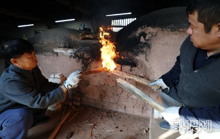 동네방네 김형규 기자 | 제54회 강진청자축제가 오는 21일 개막을 앞두고 있는 가운데 12일 전남 강진군 대구면 고려청자박물관 제2호 가마에서 도공들이 전통 방식을 그대로 재현하며 소나무 장작을 이용해 불을 지피고 있다.