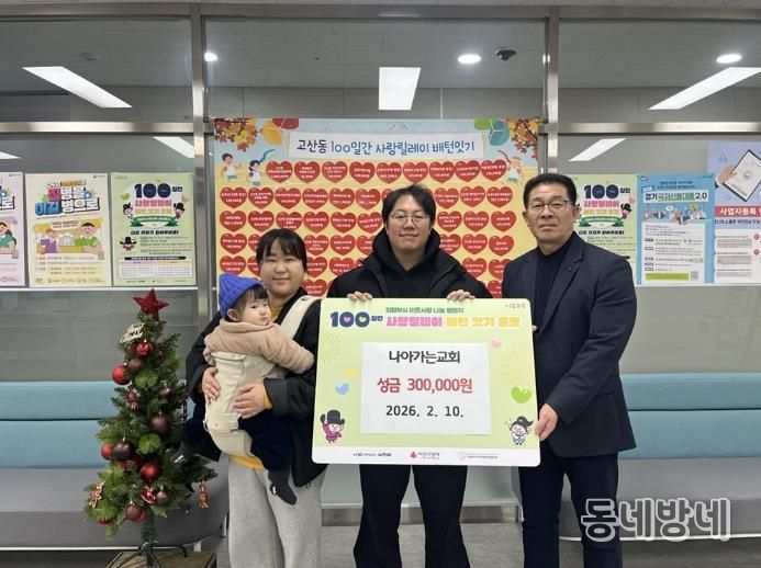 동네방네 김형규 기자 | 의정부시 고산동주민센터는 2월 10일 고산동 소재 나아가는교회가 저소득층 지원을 위해 성금 30만 원을 기탁했다고 밝혔다.