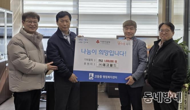 동네방네 김형규 기자 | 수원시 팔달구 고등동은 지난 11일, ㈜에코월드에서 고등동 관내 지역주민을 위해 성금 100만원을 기탁했다고 밝혔다.