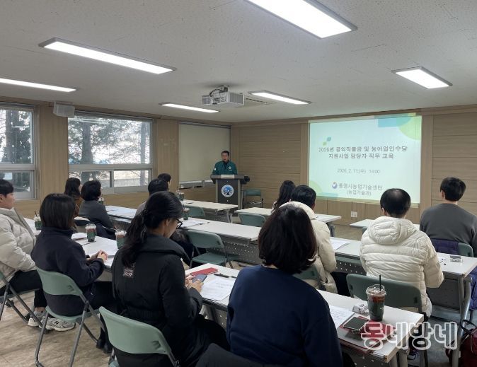 동네방네 김형규 기자 | 통영시는 지난 11일 농업기술센터 회의실에서 읍면동 업무 담당자를 대상으로‘2026년 기본형 공익직불금 및 농어업인수당 지원사업’직무 교육을 실시했다.