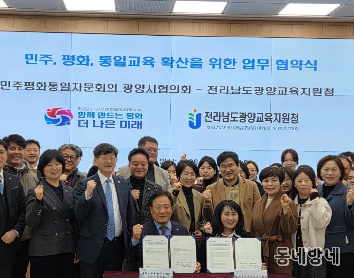 동네방네 김형규 기자 | 민주평화통일자문회의 광양시협의회(회장 박노신)는 2월 9일 오후 1시 전라남도광양교육지원청과 ‘민주·평화·통일교육 확산을 위한 업무협약’을 체결했다.