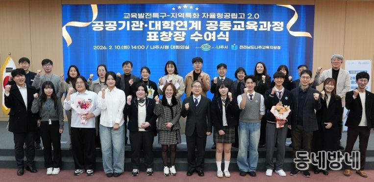 동네방네 김형규 기자 | 전라남도 나주시가 교육발전특구 시범사업의 일환으로 추진한 공공기관·대학 연계 공동교육과정의 운영 성과를 공유하고 유공자 표창을 통해 지역 교육 협력 체계를 더욱 공고히 했다.