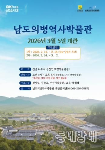 동네방네 김형규 기자 | 전라남도는 오는 3월 5일 개관하는 남도의병역사박물관을 설 연휴 등 두 차례 시범운영으로 사전 공개해 전시·시설 전반을 최종 점검하고 관람객 의견을 반영함으로써 ‘의(義) 교육 허브’로서의 완성도를 높일 계획이다.
