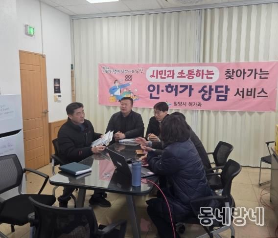 동네방네 김형규 기자 | 경남 밀양시가 운영 중인 ‘찾아가는 인·허가 상담 서비스’가 지난 1월 산내면에 이어 11일 삼랑진읍과 12일 부북면에서도 현장 상담을 이어가며 소통 행정을 강화하고 있다.