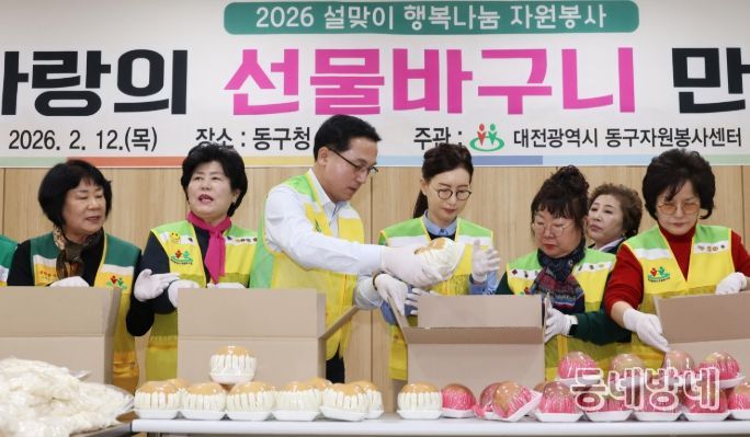 동네방네 김형규 기자 | 대전 동구는 12일 동구청 후생관에서 동구자원봉사센터 주관으로 설 명절 맞이 ‘사랑의 선물바구니’ 제작 행사를 개최했다고 밝혔다.