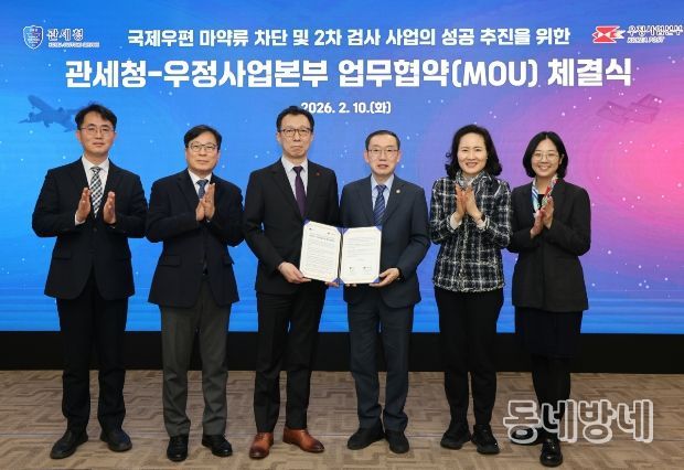 동네방네 김형규 기자 | 관세청과 과학기술정보통신부 우정사업본부(본부장 직무대리 곽병진)는 2월 10일 서울세관에서 국제우편을 통한 마약류 반입을 원천 차단하기 위해 '국제우편 마약류 차단 및 2차 검사 사업의 성공 추진을 위한 업무협약(MOU)'을 체결했다.