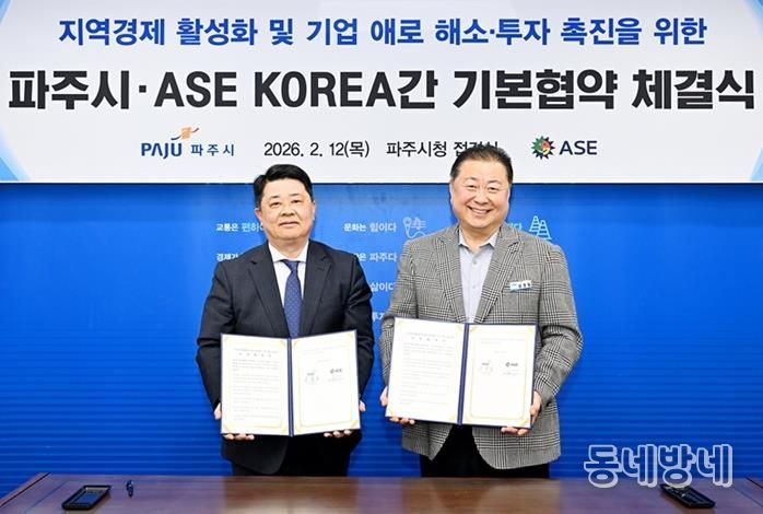 동네방네 김형규 기자 | 파주시는 기업 애로사항을 해소하고 지역 경제를 활성화하기 위해 문발2 산업단지 입주 기업인 에이에스이 코리아(ASE Korea)와 ‘폐수 연계 처리 협약’을 체결했다.