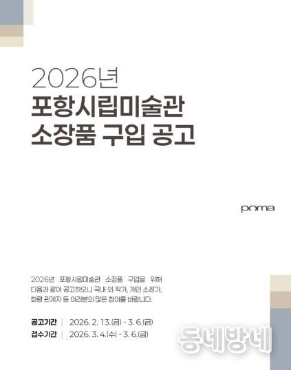 동네방네 김형규 기자 | 포항시립미술관은 13일부터 내달 6일까지 ‘2026년 포항시립미술관 소장품 구입 공고’를 진행한다.