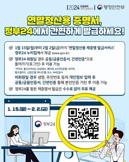 동네방네 김형규 기자 | 연말정산용 증명서, 정부24에서 무료로 간편하게 발급하세요!