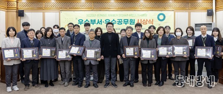 이번 시상식은 지난 1년간 우수한 성과를 낸 우수부서와 적극행정을 펼친 우수공무원에게 상장과 포상금을 전달해 사기진작을 도모하고자 마련된 자리다.
