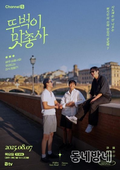 뜨거운 피렌체에서 펼쳐지는 웃음과 미식의 향연 권율x연우진x이정신의 '찐' 현지 맛집 탐방기 채널S, SK브로드밴드 공동 제작 '뚜벅이 맛총사'는 매주 목요일 밤 9시 20분에 방송된다.