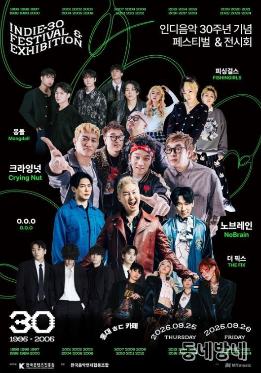 '인디 30주년 기념 페스테벌 & 전시회'는 엠와이뮤직이 주관하고 한국음악연대협동조합이 후원하는 프로그램으로, 한국콘텐츠진흥원의 대중음악 공간기획 지원사업에 선정돼 제작지원을 받는 사업이다.