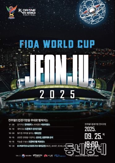동네방네 김형규 기자 | 전주시가 오는 25일 개막하는 ‘2025 전주드론축구월드컵(FIDA World Cup Jeonju 2025)’에 참가하는 전세계 드론축구선수단의 안전하고 편안한 체류를 위한 준비를 완료했다.