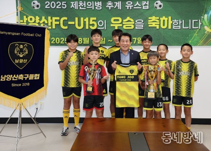 동네방네 김형규 기자 | 양산시는 지난 10일 양산시청 상황실에서 ‘2025 제천의병 추계 U14 유스컵’에서 우승을 차지한 남양산FC 선수단을 초청해 격려하는 자리를 가졌다.