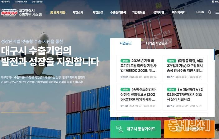 대구시는 2014년부터 ‘대구수출지원시스템’을 구축·운영하며, 지역 기업들이 해외 마케팅 지원사업 신청과 수출 통계 조회를 편리하게 이용할 수 있도록 지원해 왔다.