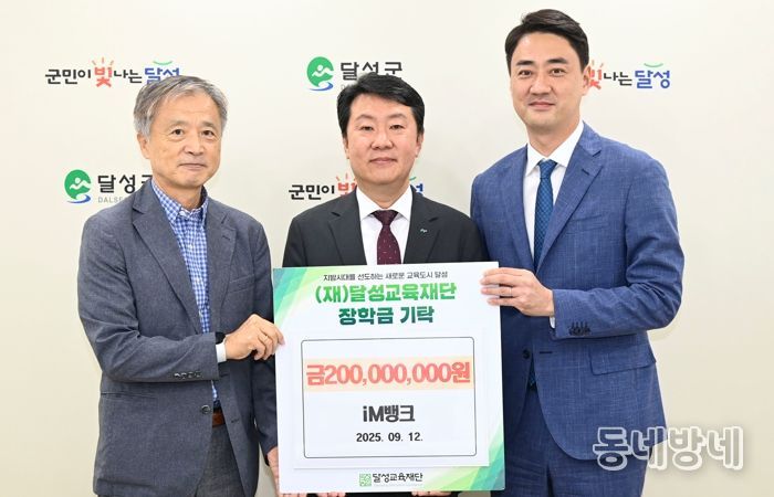 동네방네 김형규 기자 | (재)달성교육재단은 지난 12일 iM뱅크로부터 지역 인재 육성 장학금 2억 원을 전달받았다고 밝혔다.