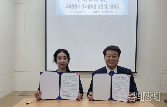 동네방네 김형규 기자 | 대구 중구진로진학지원센터는 지난 10일 지역 공방 골든볼드, 스틸웨이브, 향품달과 청소년 진로체험 및 진로교육 활성화를 위한 업무협약(MOU)을 체결했다.