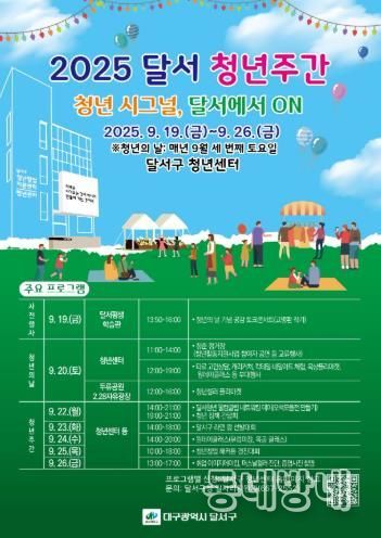 동네방네 김형규 기자 | 대구 달서구는 오는 9월 20일 ‘청년의 날’(매년 9월 셋째 토요일)을 기념해 9월 19일부터 26일까지 '2025년 달서 청년주간'을 개최한다고 밝혔다.