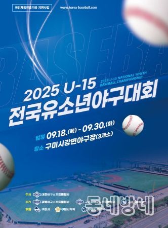 동네방네 김형규 기자 | 구미시가 9월 18일부터 30일까지 강변야구장 3개 구장에서 'U-15 전국 유소년 야구대회'를 개최한다.
