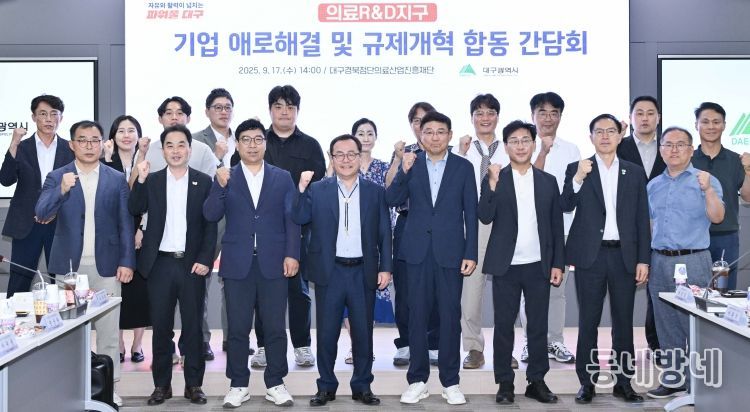 동네방네 김형규 기자 | 대구광역시는 9월 17일 오후 2시, 대구경북첨단의료산업진흥재단에서 홍성주 대구시 경제부시장 주재로 의료R·D지구 내 기업과 유관기관이 함께하는 ‘제3차 기업 애로해결 및 규제개혁 합동간담회’를 개최했다.