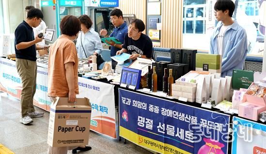 동네방네 김형규 기자 | 대구 동구청은 지난 17일, 동구청 로비에서 중증장애인생산품 구매 독려를 위한 전시·홍보전을 개최했다.