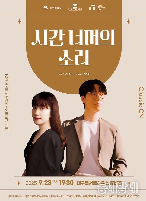 동네방네 김형규 기자 | 지역 청년 작곡가들의 창작품으로 선보이는 대구콘서트하우스 클래식 ON ‘시간 너머의 소리’ 공연이 9월 23일 오후 7시 30분 대구콘서트하우스 챔버홀에서 진행된다.