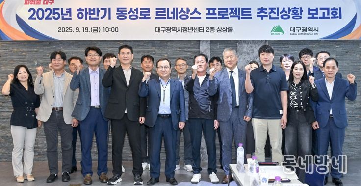 동네방네 김형규 기자 | 대구광역시는 지난 9월 19일 오전 10시, 대구시청년센터 2층 상상홀에서 홍성주 대구시 경제부시장 주재로 ‘2025년 하반기 동성로 르네상스 프로젝트 추진상황 보고회’를 개최했다.