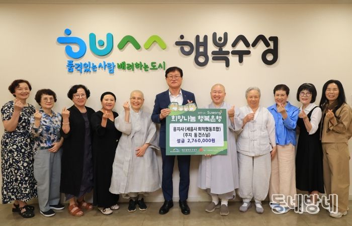 동네방네 김형규 기자 | 대구 수성구는 지난 19일 용지사(세음사회적협동조합) 주지 동건스님과 신도들이 재난 피해 주민들을 위해 써달라며 성금 276만 원을 전달했다고 밝혔다.