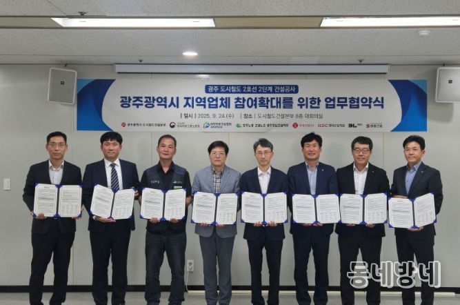 동네방네 김형규 기자 | 광주광역시는 24일 도시철도건설본부 대회의실에서 도시철도 2호선 2단계 건설공사의 원활한 추진과 지역 건설경기 활성화를 위한 업무협약을 체결했다.