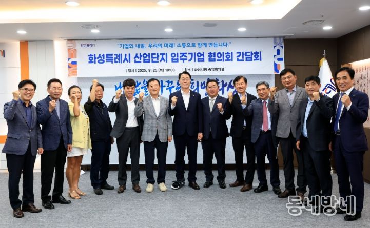 동네방네 김형규 기자 | 화성특례시가 25일 시청 중앙회의실에서 시와 기업 간의 상생 협력 방안 논의를 위한 ‘산업단지 입주기업 협의회 간담회’를 개최했다.