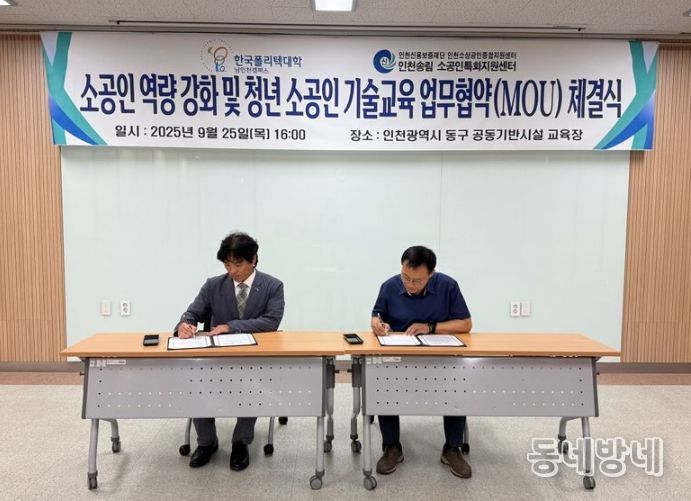 동네방네 김형규 기자 | 인천광역시는 9월 25일 인천송림 소공인특화지원센터에서 ‘소공인 역량 강화 및 청년 소공인 기술교육 지원을 위한 업무협약(MOU)’을 체결했다고 밝혔다.