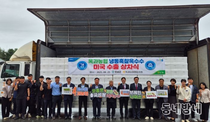 동네방네 김형규 기자 | 곡성군이 지난 25일 옥과농협 농산물유통센터(APC)에서 미국으로 수출하는 흑찰옥수수의 첫 상차식을 개최했다.