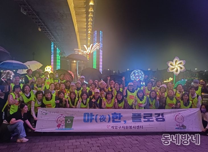 동네방네 김형규 기자 | 인천 계양구자원봉사센터는 지난 24일 저녁, ‘계양아라온 아트웨이(빛의 거리 3단계)’와 ‘가을꽃 국화축제’가 열리는 현장에서 자원봉사자 74명과 함께 ‘야(夜)한 플로깅’ 봉사활동을 진행했다.