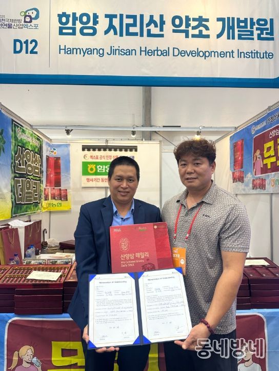 동네방네 김형규 기자 | 경남 함양농협에서 운영하는 지리산약초개발원이 2025제천국제한방천연물산업엑스포에서 해외 기업과 연달아 수출협약을 체결하며 주목받고 있다.