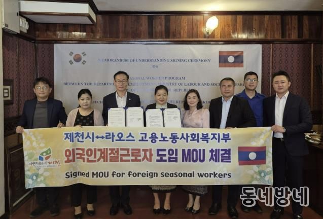 동네방네 김형규 기자 | 제천시는 지난 9월 30일 라오스 노동사회복지부와 외국인 계절근로자 도입을 위한 신규 업무협약(MOU) 을 체결했다. 이번 협약은 농번기 원활한 인력 공급을 위해 추진된 것으로, 특히 농촌 인력 공급 국가를 다변화해 불확실성을 최소화하는 데 목적이 있다.