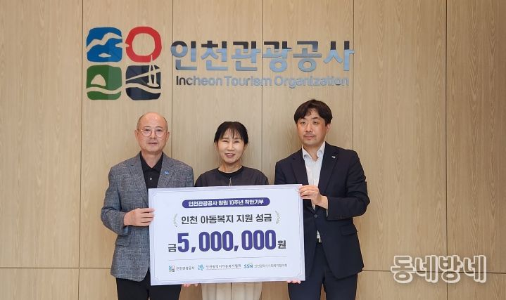 동네방네 김형규 기자 | 인천관광공사가 창립 10주년을 맞아 인천지역 아동복지 지원 성금 500만원을 인천아동복지협회에 전달했다.