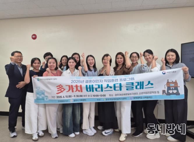 동네방네 김형규 기자 | 경주시는 경주여성새로일하기센터가 지난달 30일 오전 센터 4층에서 결혼이민여성 직업훈련 프로그램인 ‘多가치 바리스타 클래스’ 수료식을 열었다고 1일 밝혔다.