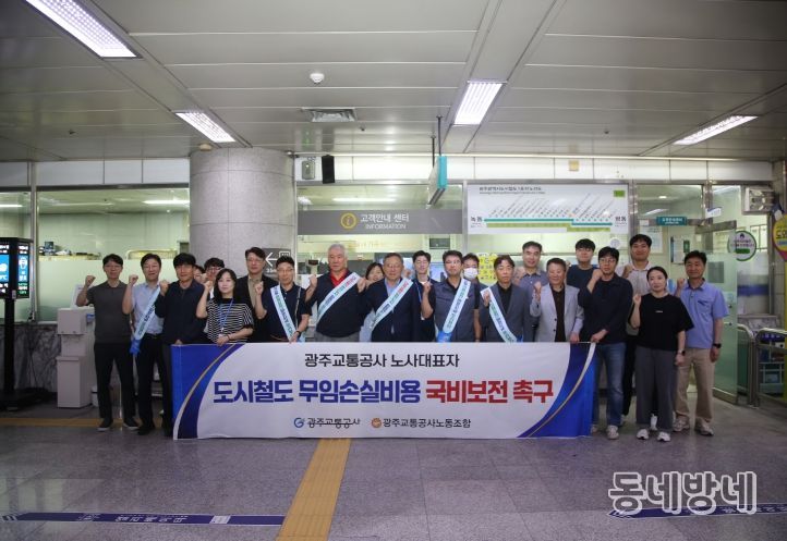 동네방네 김형규 기자 | 광주교통공사 노사는 1일 서구 상무역에서 시민들을 대상으로 ‘도시철도 무임 손실 국비 보전 홍보 캠페인’을 펼치고, 무임 승차 적자 문제에 대한 정부 차원의 지원을 촉구하고 나섰다.