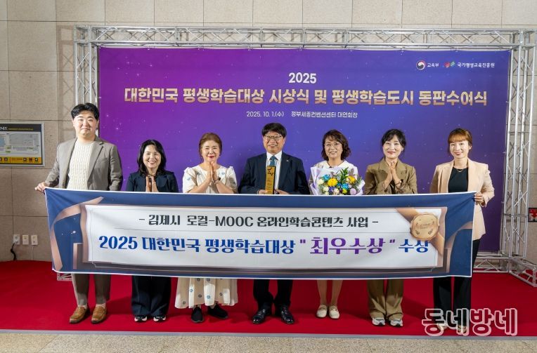 동네방네 김형규 기자 | 김제시가 생활 속 평생학습을 실천하고 있는 우수사례를 발굴해 시상하는 '제22회 대한민국 평생학습대상'에서 '디지털 학습시대 무형의 학습자산을 만드는 김제형 로컬-MOOC 구축사업'으로 올해의 평생학습사업 최우수상을 받았다.