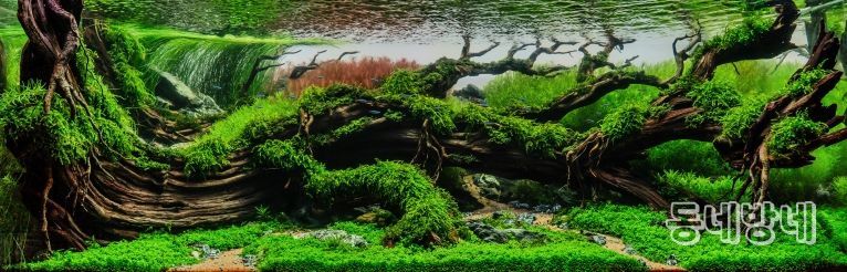 특히 지리산 자락 계곡의 흐름과 유려한 형상의 나무들에 영감을 받아 수조 안을 재현해 국내 출품작 중 가장 좋은 평가를 받았다.
