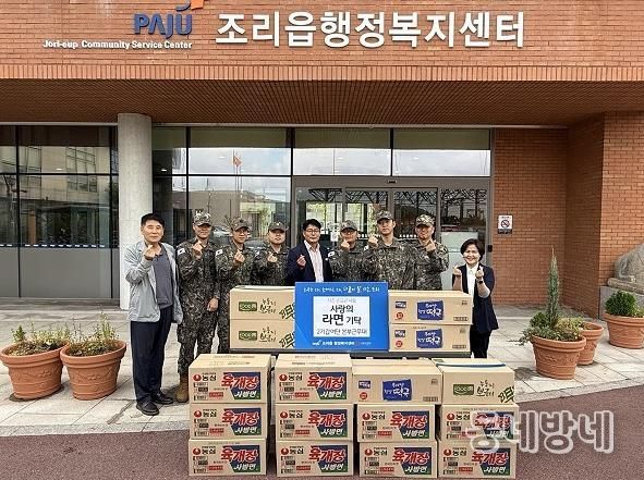 동네방네 김형규 기자 | 파주시 조리읍은 지난 29일, 제2기갑여단 본부근무대가 추석을 맞아 지역 내 어려운 이웃을 돕기 위해 컵라면 등 즉석식품 16상자를 기탁했다고 밝혔다.