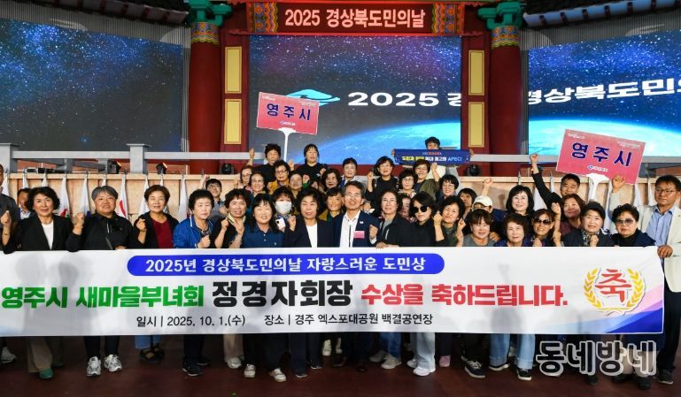 동네방네 김형규 기자 | 영주시는 10월 1일 경주 엑스포대공원 백결공연장에서 열린 ‘2025년 도민의 날 기념식’에서 정경자 영주시 새마을부녀회장이 ‘영주시 자랑스러운 도민상’을 수상했다고 밝혔다.
