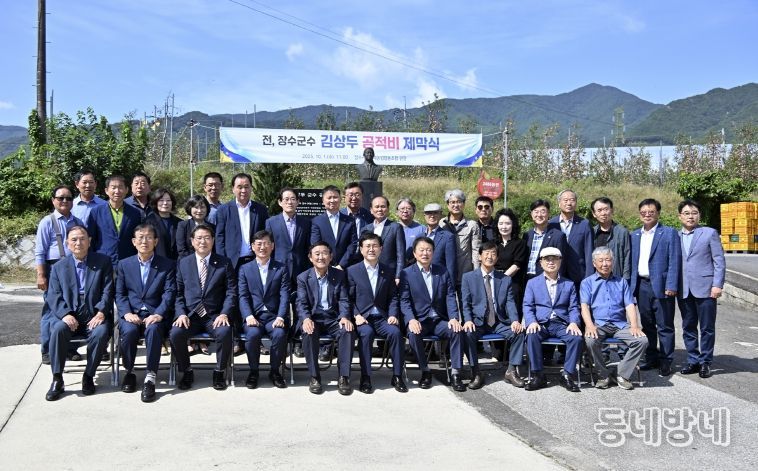 동네방네 김형규 기자 | 장수군은 지난 1일 장수사과원예협동조합 광장에서 김상두 전 장수군수의 공적비 제막식을 거행했다고 밝혔다.