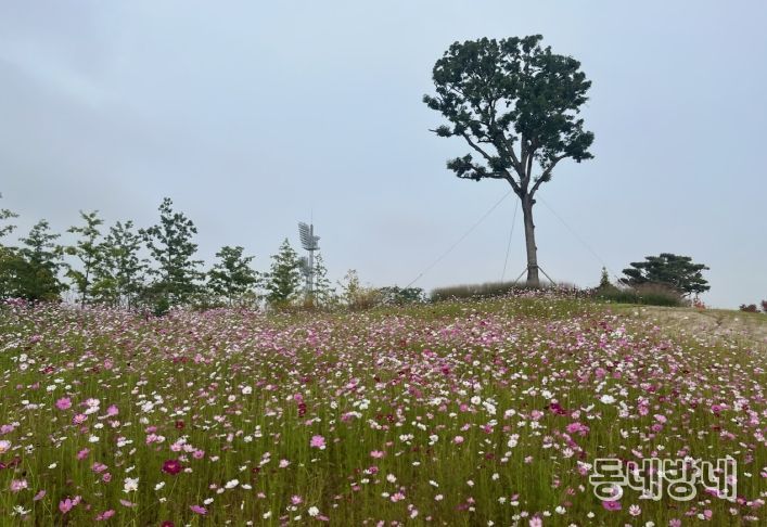동네방네 김형규 기자 | 충주시가 도심 속에 대규모 코스모스 단지를 조성해 시민들에게 가을의 정취를 선사하고 있다.