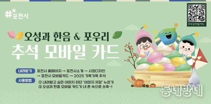 동네방네 김형규 기자 | 포천시는 지난 1일 민족 최대 명절 추석을 맞아 시민들이 감사와 따뜻한 마음을 손쉽게 전할 수 있도록 ‘추석 모바일 카드’를 무료 배포했다.