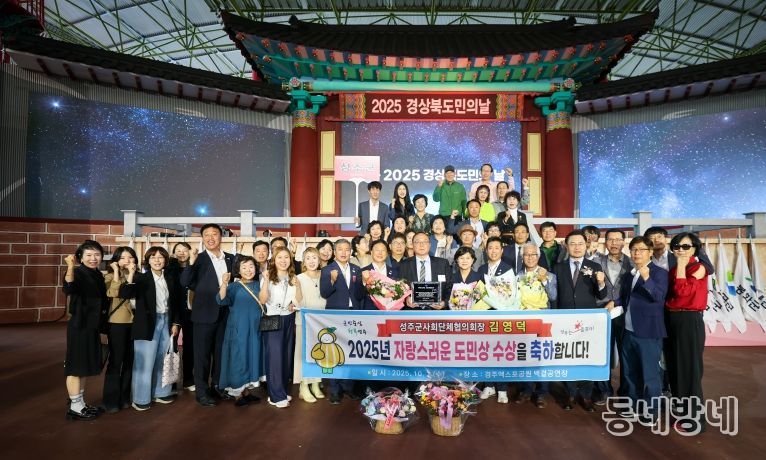 동네방네 김형규 기자 | 성주군 사회단체협의회 김영덕 회장이 2025년 10월 1일 개최된 2025 경상북도민의 날 기념식에서 ‘자랑스러운 도민상’을 수상했다.