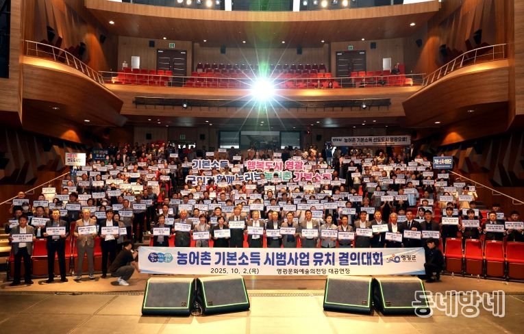 동네방네 김형규 기자 | 영광군은 지난 10월 2일 오후 2시, 영광문화예술의전당 대공연장에서 '농어촌기본소득 시범사업 유치 결의대회'를 성황리에 개최했다.