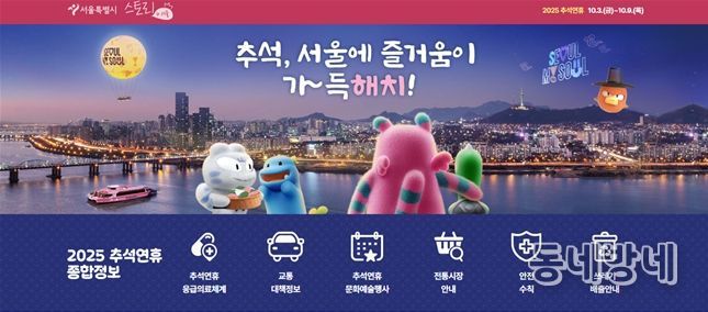 동네방네 김형규 기자 | 서울시가 7일간의 추석 연휴 기간 동안 시민들이 안전하고 쾌적하게 지낼 수 있도록 다양한 정보를 한곳에 모은 ‘2025 추석연휴 종합정보’서비스를 서울시 대표 누리집을 통해 제공한다.